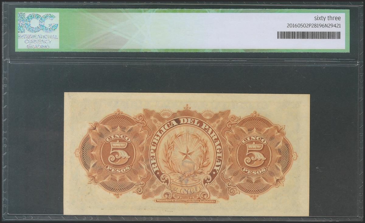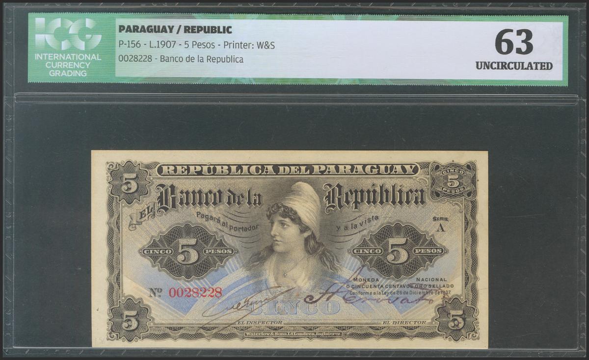 PARAGUAY. 5 pesos. 1907. Series A. (Pick: 156). ICG63.
