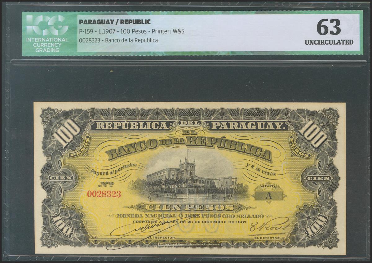 PARAGUAY. 100 pesos. 1907. Series A. (Pick: 159). ICG63.