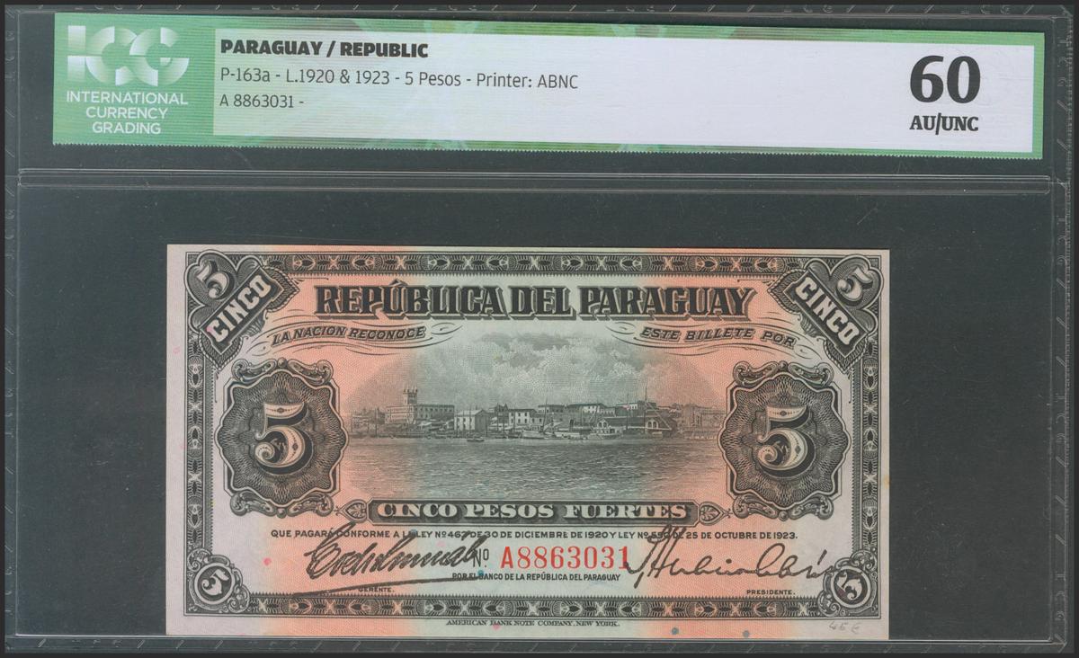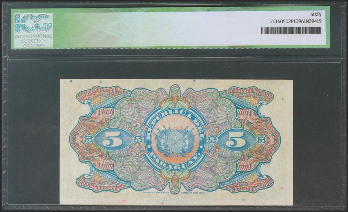 PARAGUAY. 5 pesos. 1920-23. Series A. (Pick: 163a). ICG60.