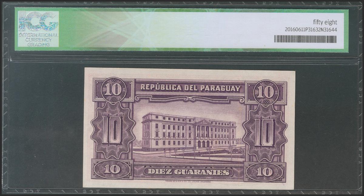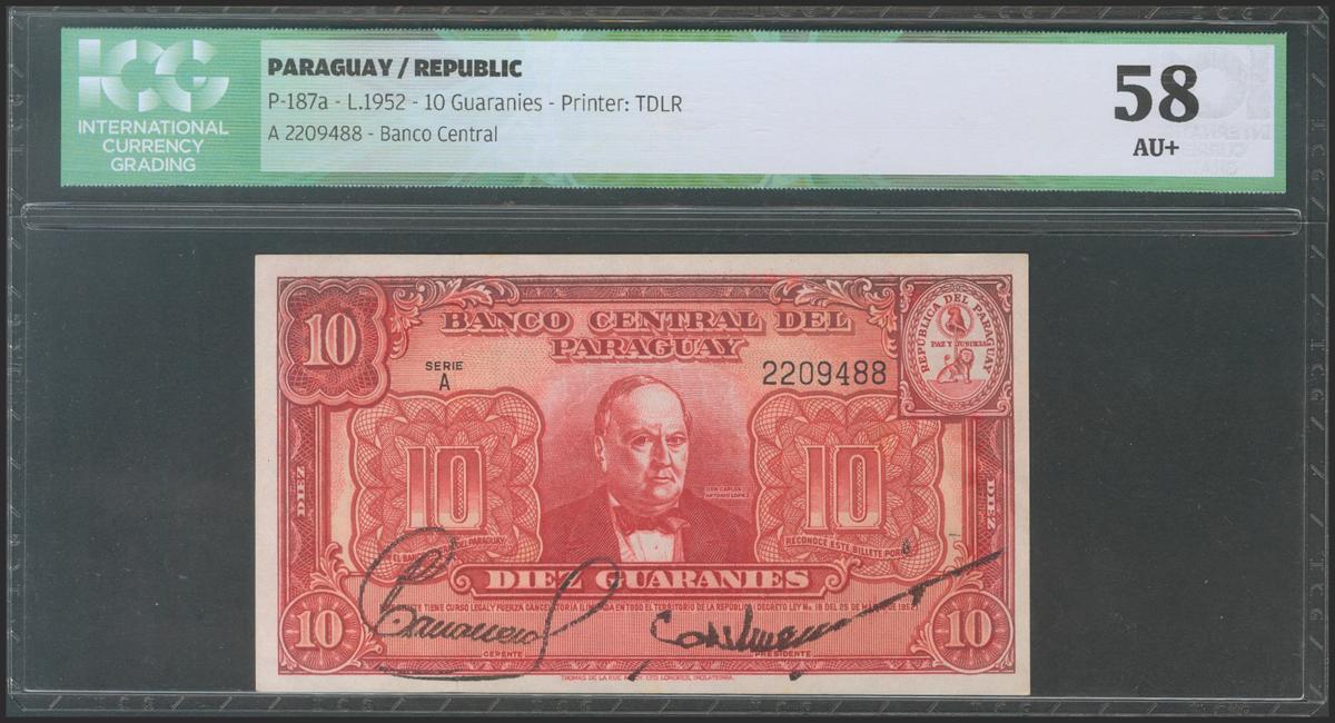 PARAGUAY. 10 Guaranies. 1952. Series A. (Pick: 187a). ICG58.