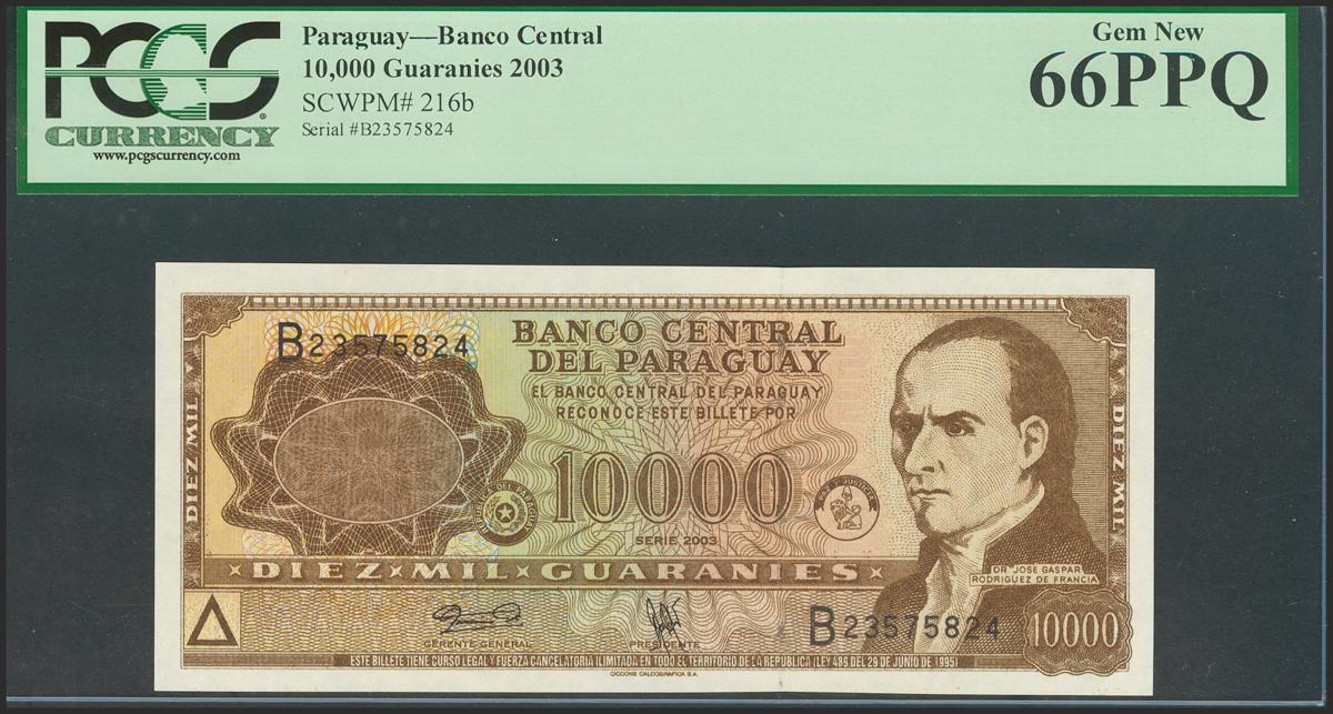 PARAGUAY. 10000 Guaranies. 2003. (Pick: 216b). PCGS66PPQ.