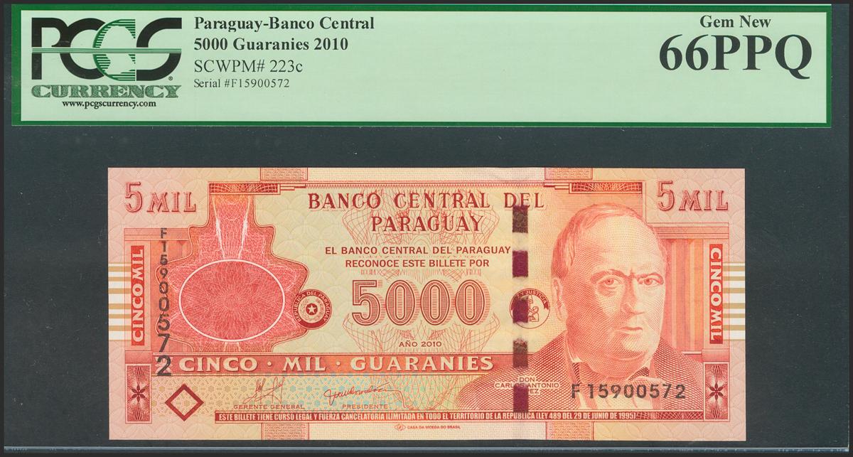 PARAGUAY. 5000 Guaranies. 2010. (Pick: 223c). PCGS66PPQ.