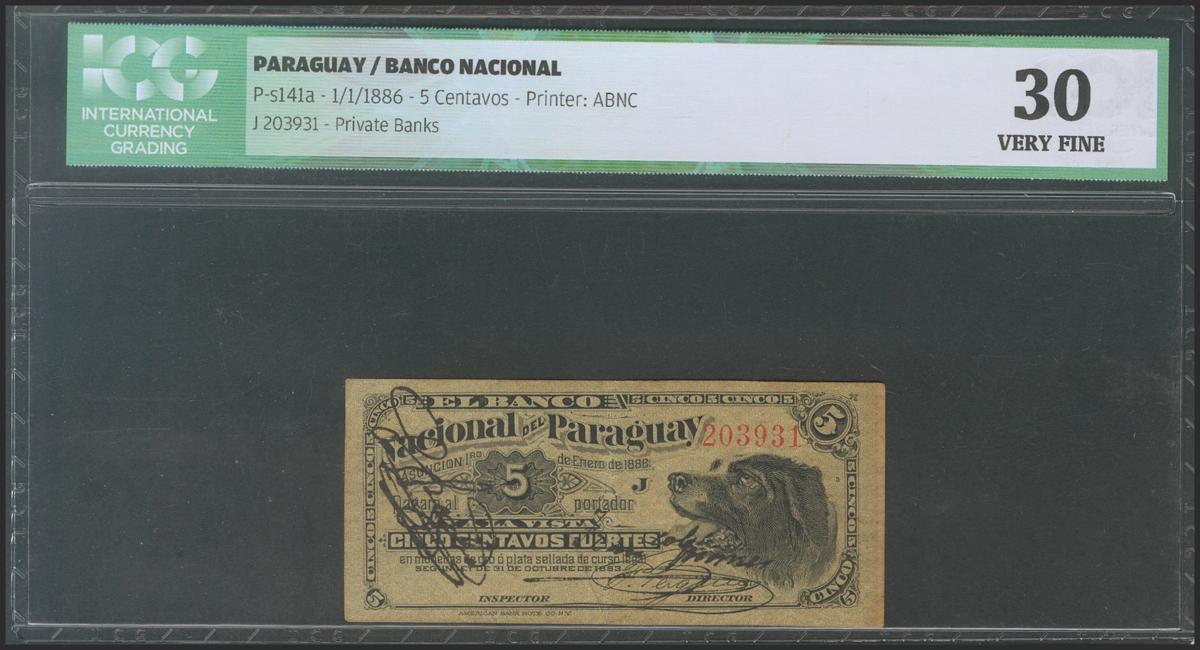 PARAGUAY. 5 cents. 1 January 1886. Series J. (Pick: s141a). ICG30.