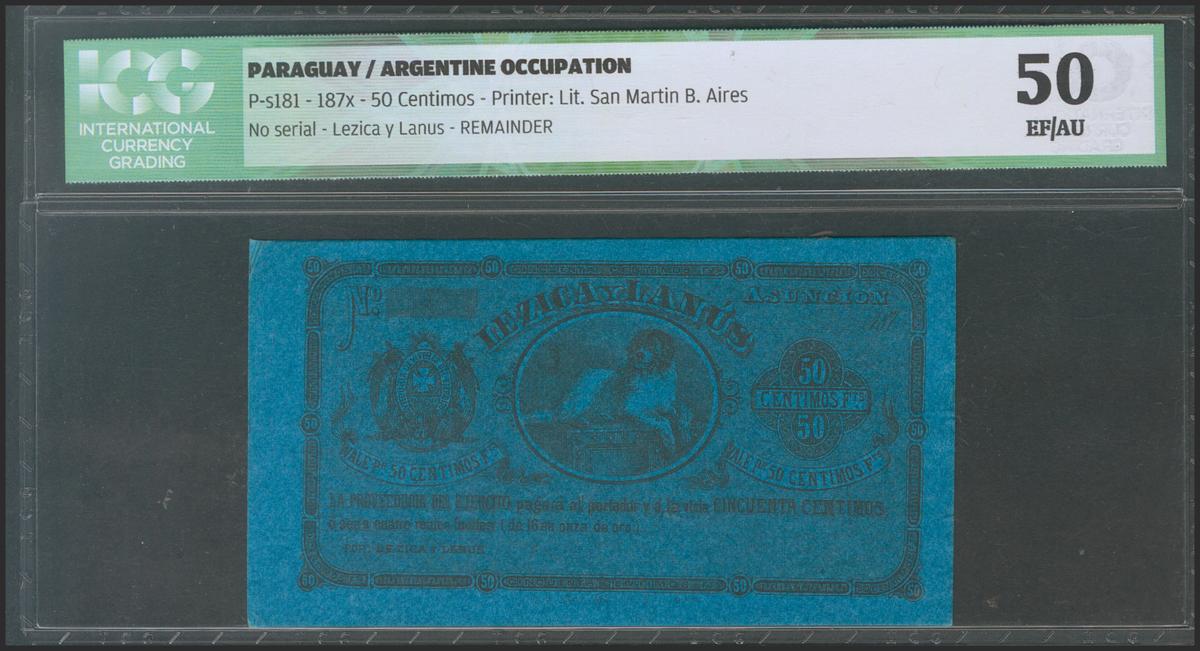 PARAGUAY. 50 cents. (1870ca). (Pick: s181). ICG50.