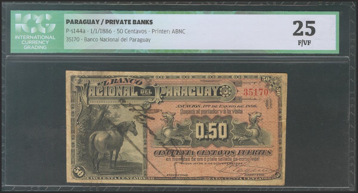 English PARAGUAY. 50 cents. 1 January 1886. (Pick: s144a). ICG25.