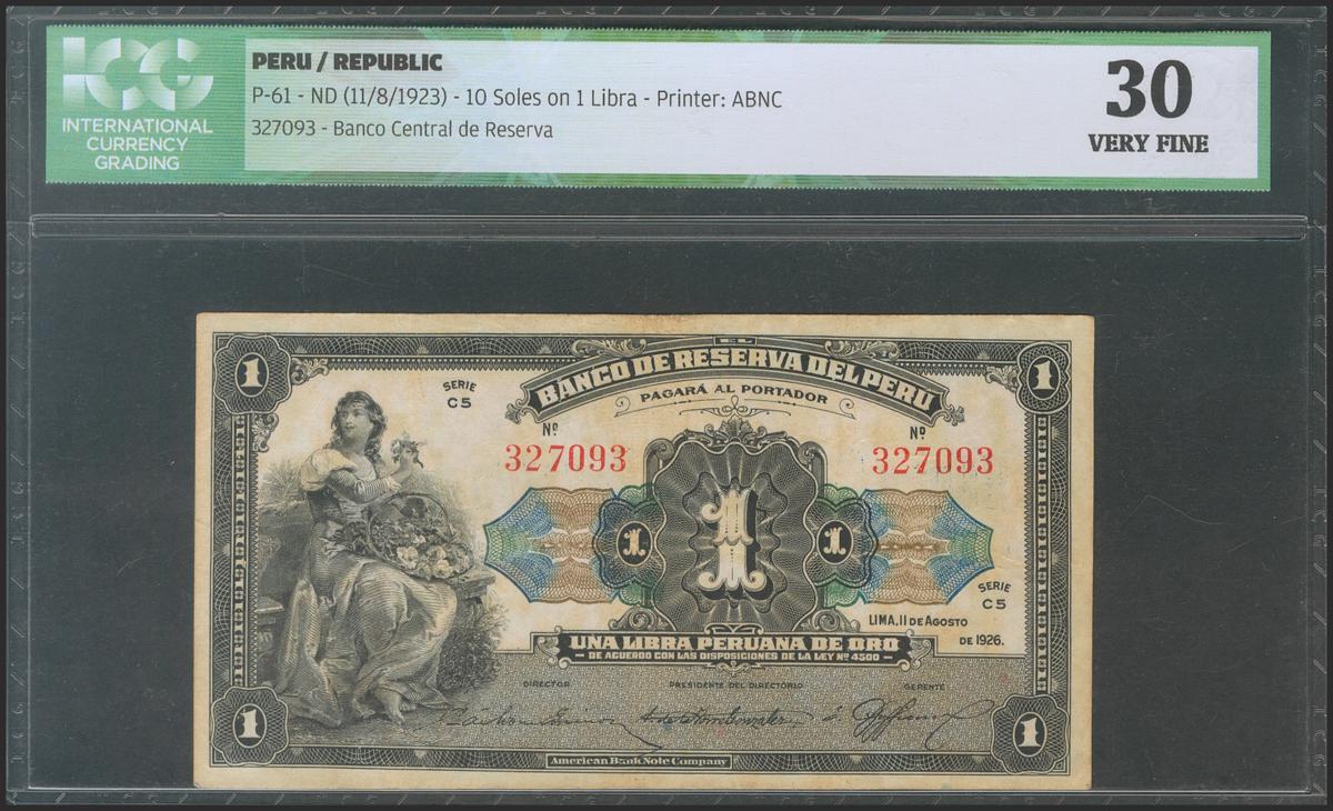 PERU. 10 Suns. August 11, 1923. Series C5. (Pick: 61). ICG30.