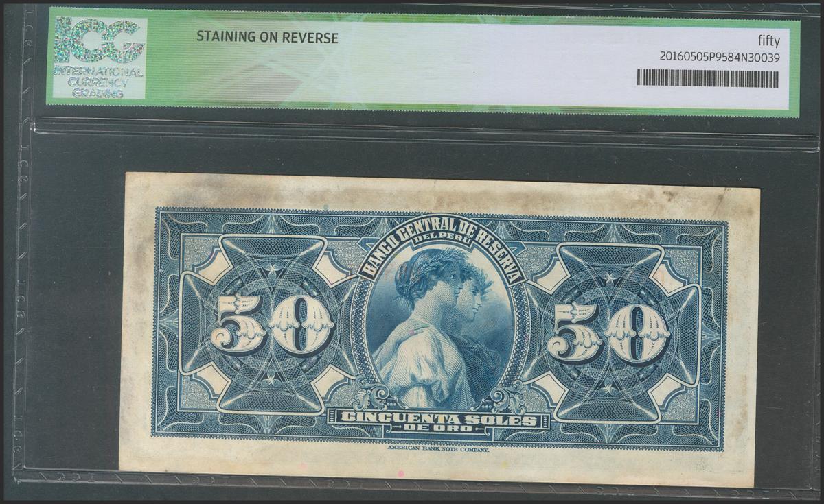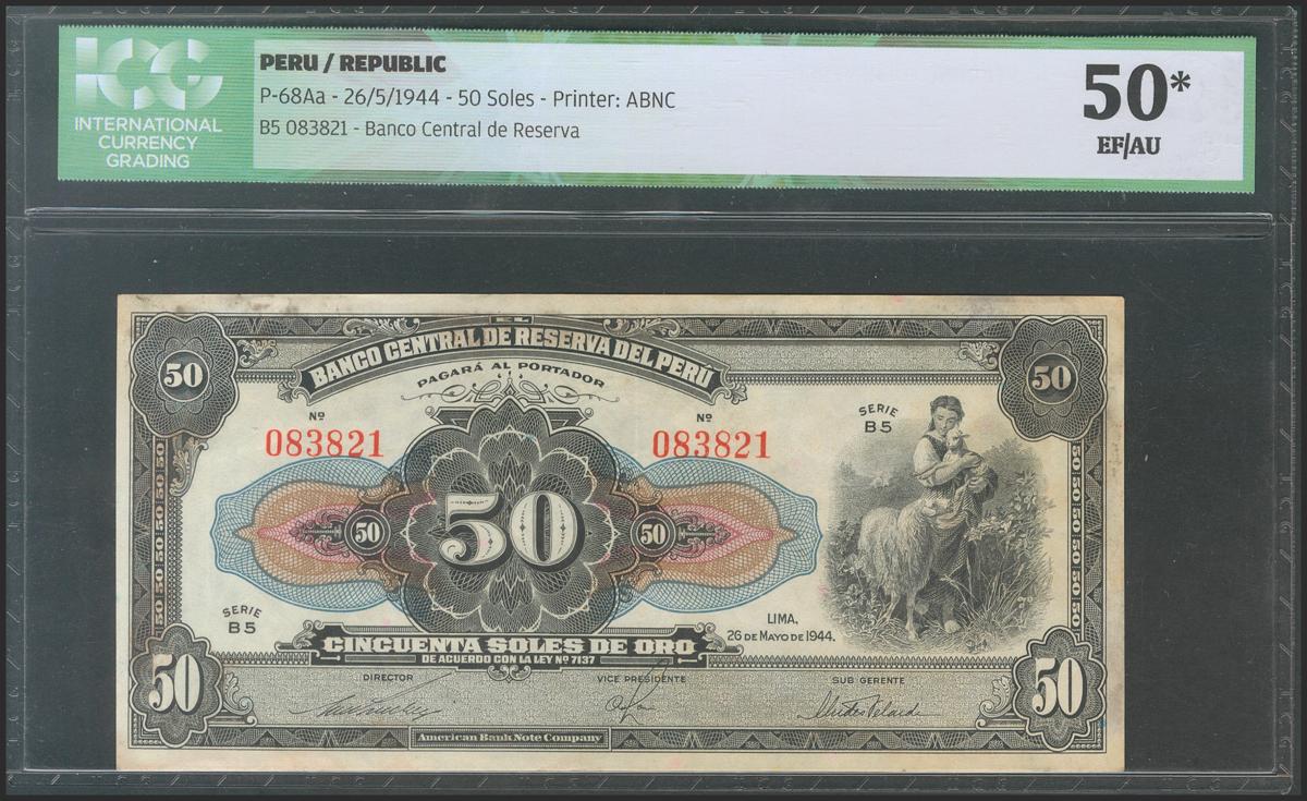 PERU. 50 Soles. May 26, 1944. Series B5. (Pick: 68Aa). ICG50 * (Staning on reverse).