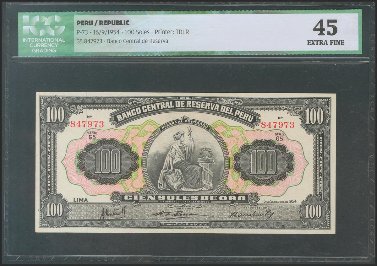 PERU. 100 Suns. September 16, 1954. G5 Series. (Pick: 73). ICG45.