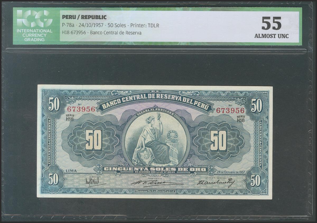 PERU. 50 Soles. October 24, 1957. Series H18. (Pick: 78a). ICG55.