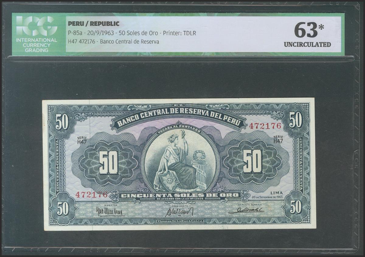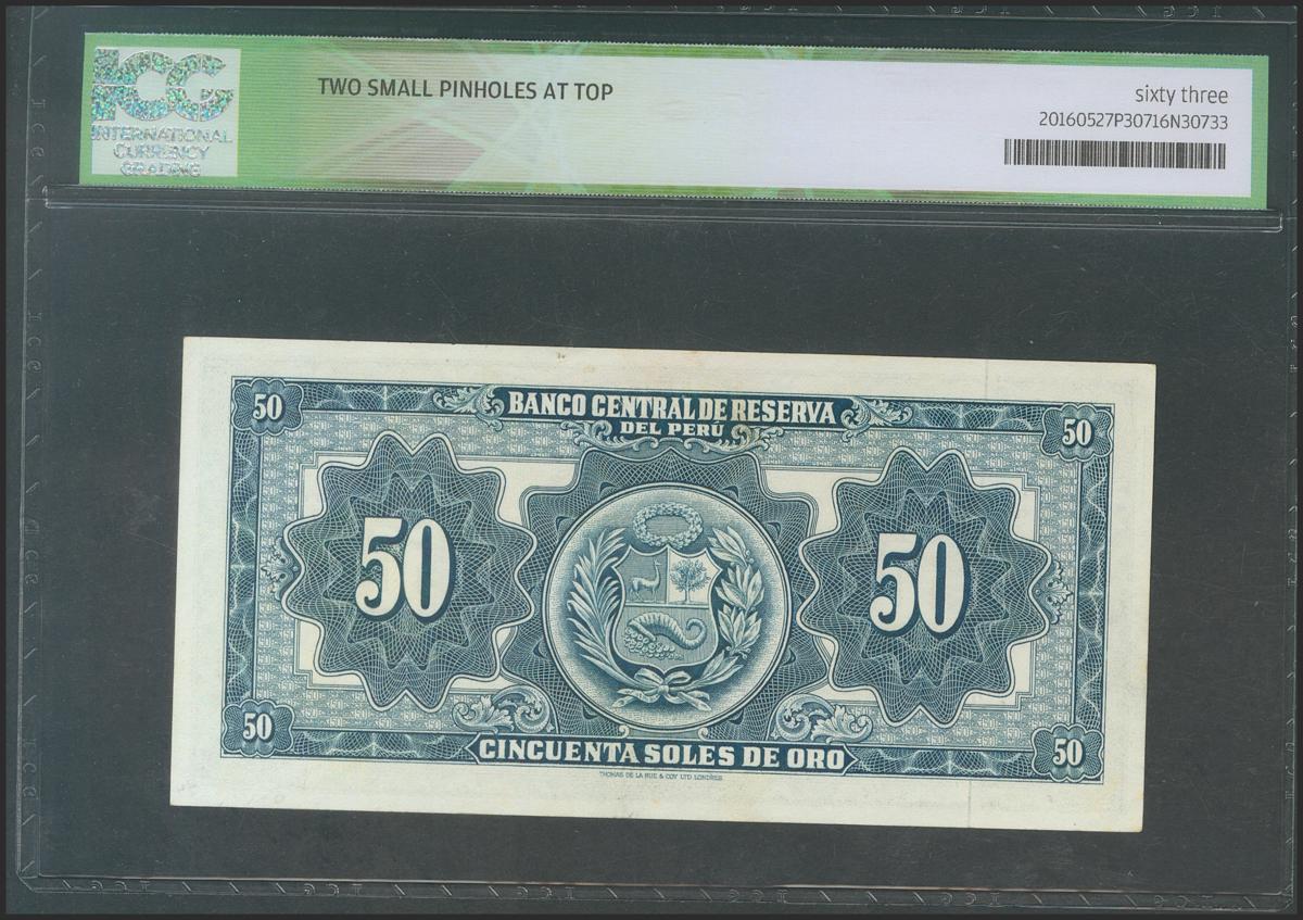 PERU. 50 Soles de Oro. September 20, 1963. Series H47. (Pick: 85a). ICG63 * (Two small pinholes at top).