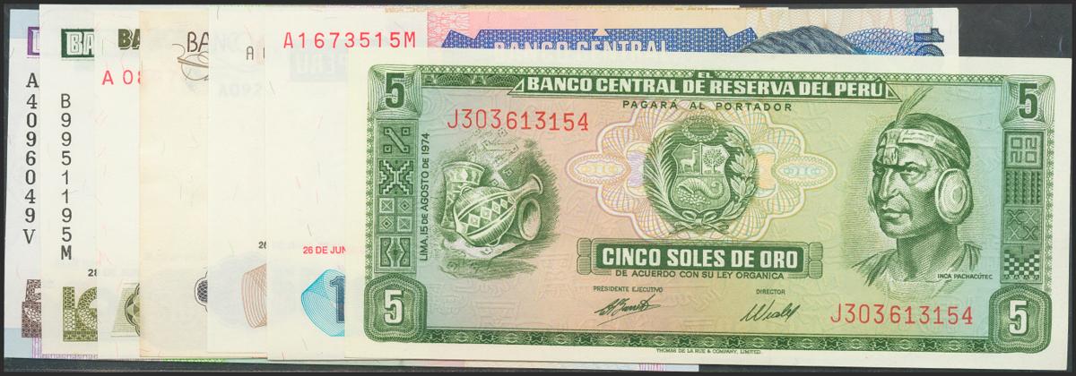 English PERU. Set of 7 banknotes, different values and years. Uncirculated.