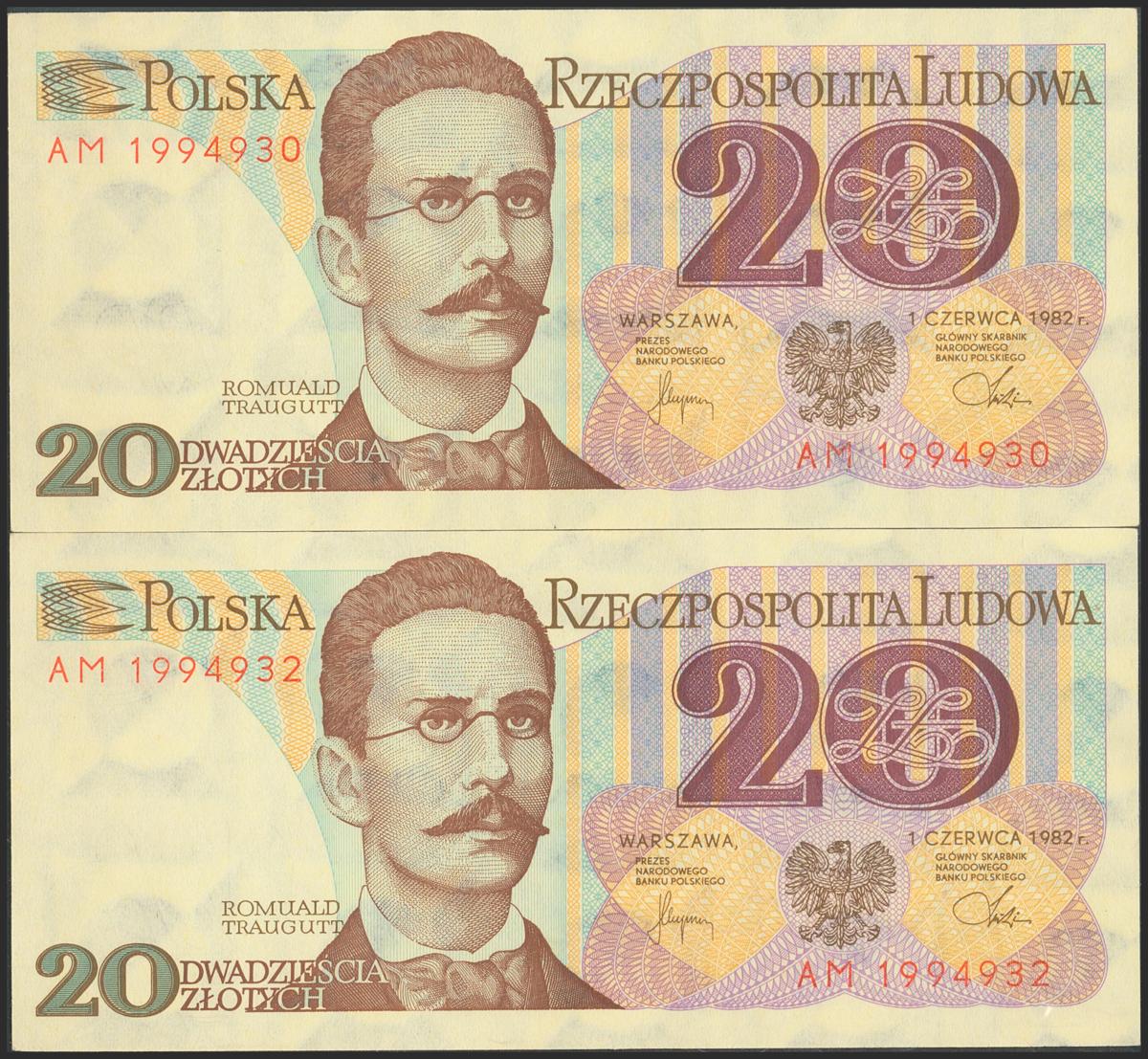 POLAND. 20 Zlotych. 1 June 1982. Consecutive pair. (Pick: 149). Uncirculated.