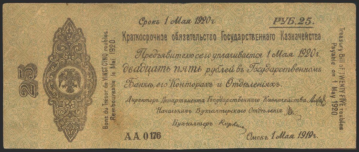 RUSSIA. 25 Rubles. 1919. (Pick: S855a). Better than Fine.