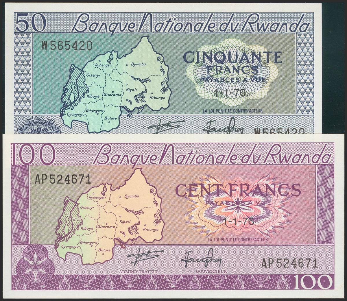 RWANDA. Set of 2 banknotes: 50 Francs, 100 Francs. 1976. (Pick: 7c, 8d). Uncirculated.