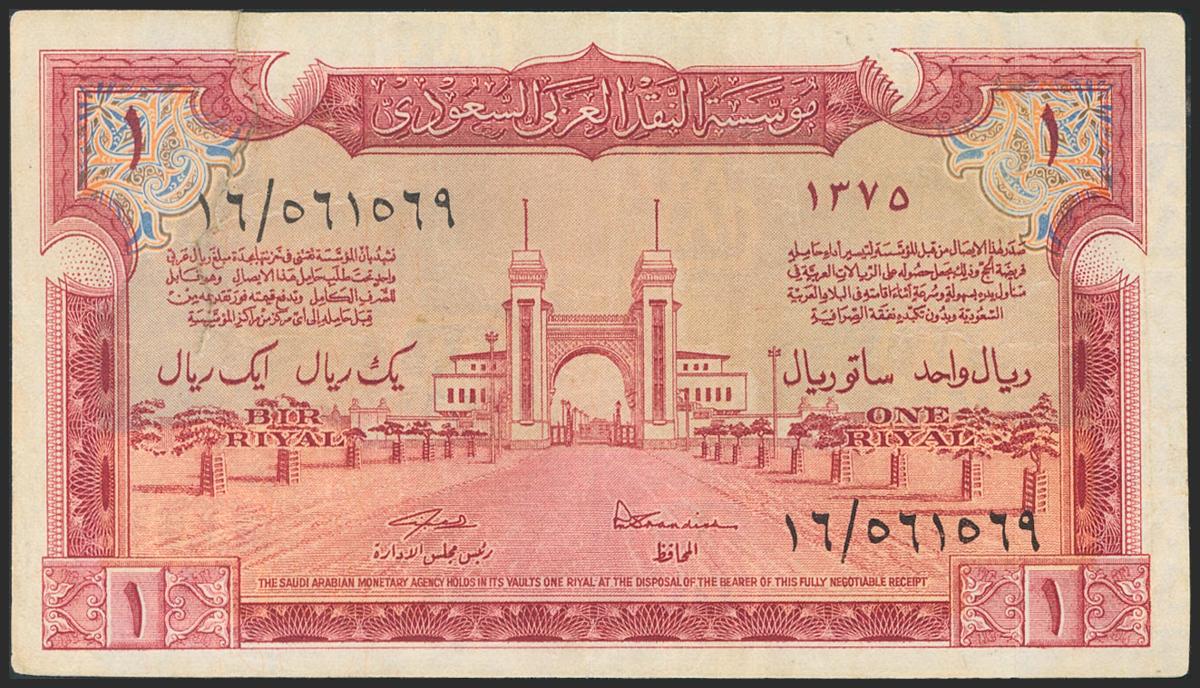 English SAUDI ARABIA. 10 Riyals. 1968. (Pick: 13). About Very Fine.