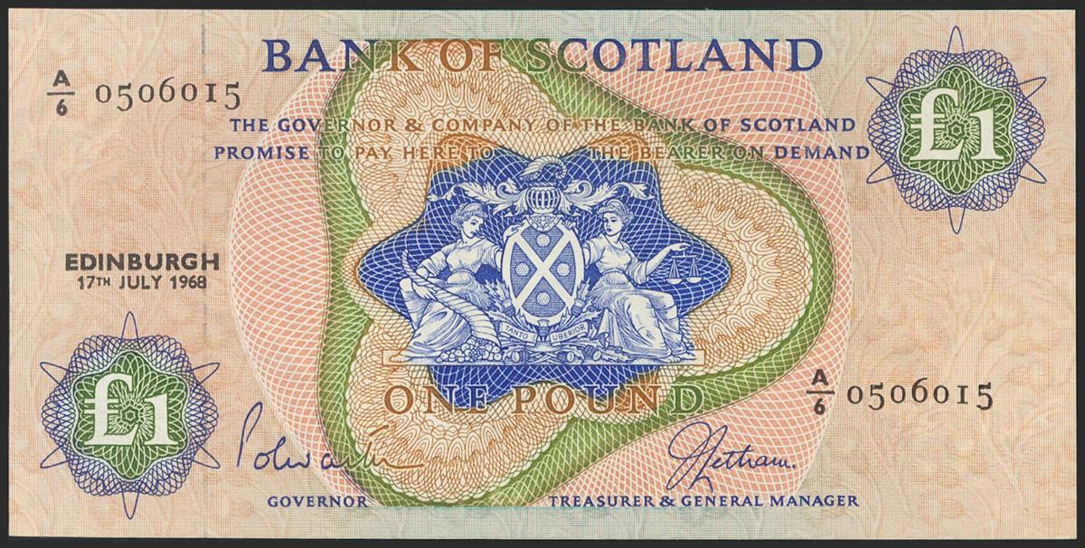 SCOTLAND. 1 Pound. 1968. Bank of Scotland. (Pick: 109a). Uncirculated.
