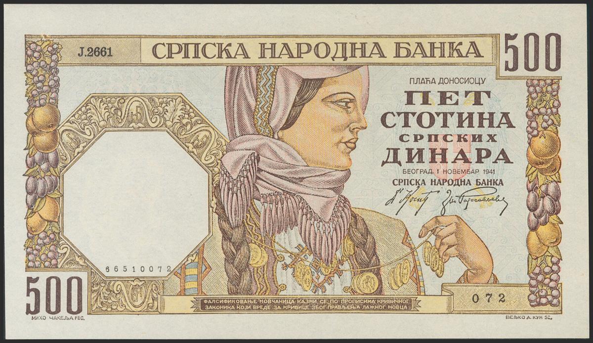 SERBIA. 500 Dinara. 1941. (Pick: 27b). Uncirculated.