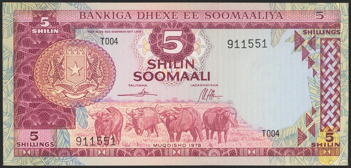 SOMALIA. 5 Shillings. 1978. (Pick: 20Aa). About Uncirculated.