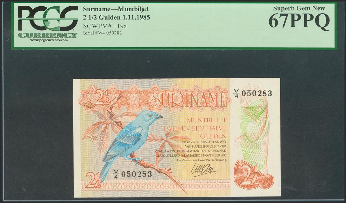 SURINAME. 2´5 Gulden. 1985. (Pick: 119a). PCGS67PPQ.