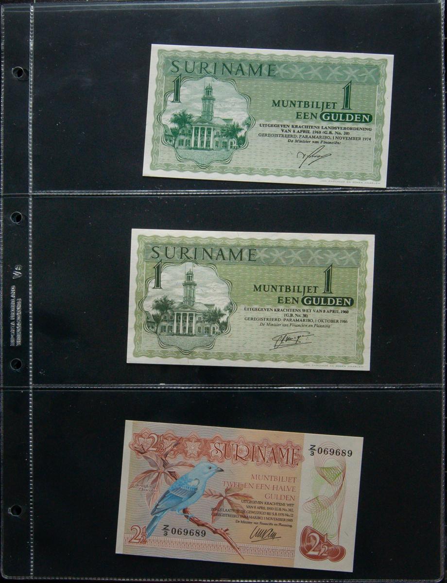 SURINAME. Great set of 33 banknotes, includes rare Pick 154 in grade 65. Uncirculated to About Uncirculated. TO EXAM.