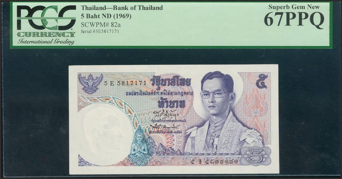 THAILAND. 5 Baht. 1969. (Pick: 82a). PCGS67PPQ.