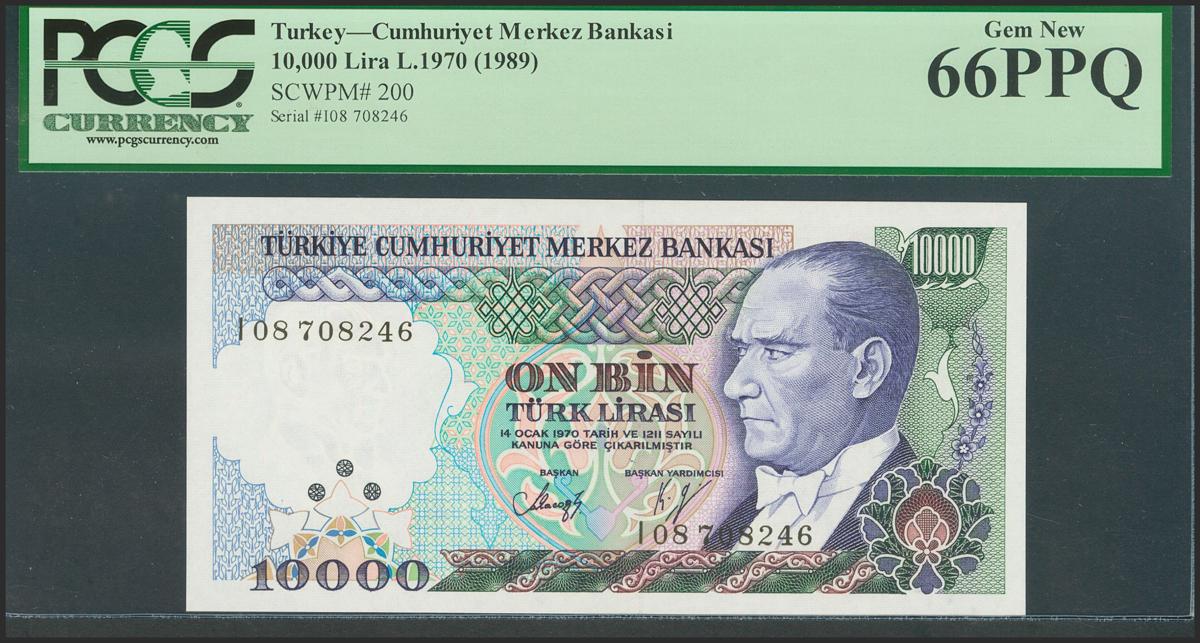 TURKEY. 10,000 Lyre. 1989. (Pick: 200). PCGS66PPQ.