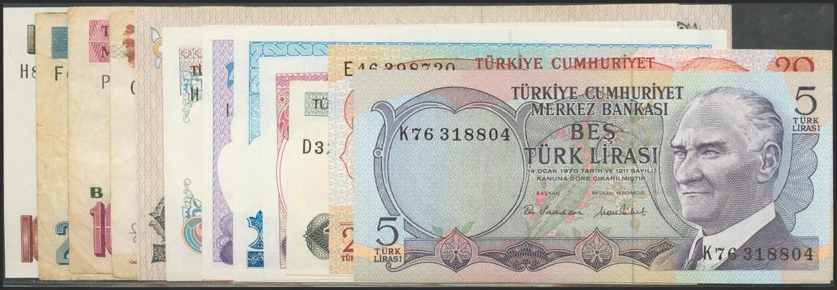 TURKEY. Set of 12 banknotes, different values and years. From Fine to Uncirculated. TO EXAM.