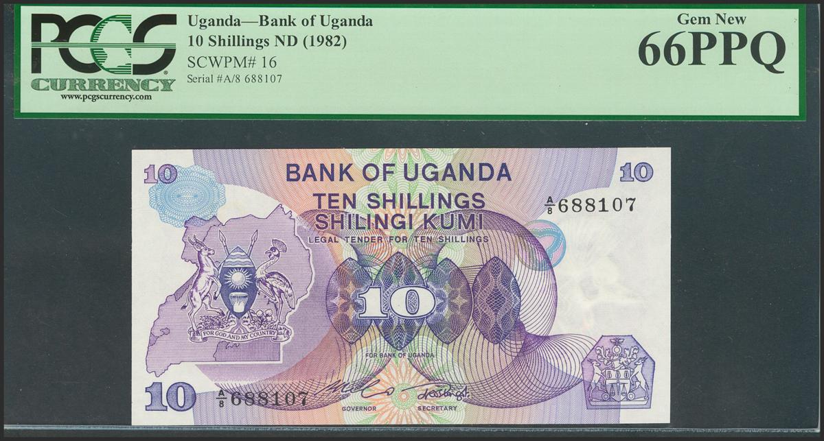 UGANDA. 10 shillings. 1982. (Pick: 16). PCGS66PPQ.
