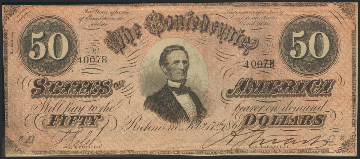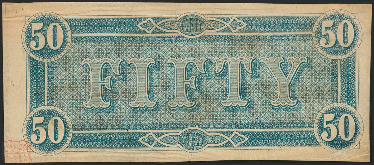 UNITED STATES. CONFEDERATE STATES OF AMERICA. 50 Dollars. 1861. (Pick: 70) (Friedberg: CS-66). Longitudinal paper ripples. Extremely Fine.