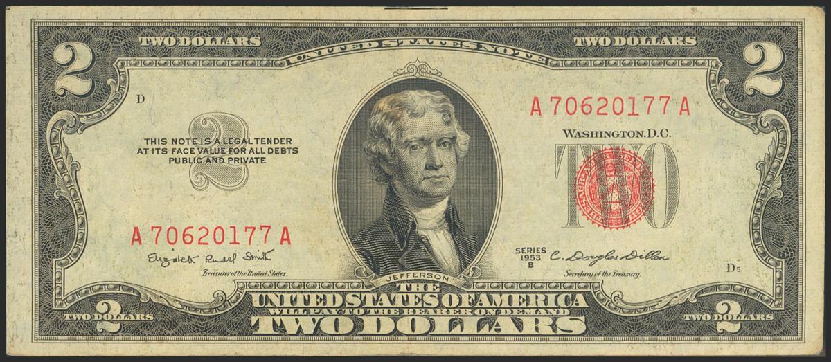 UNITED STATES OF AMERICA. 2 Dollars. 1953B. United States Note. Red signal. (Pick: 380b, Friedberg: 1511). Very Fine.