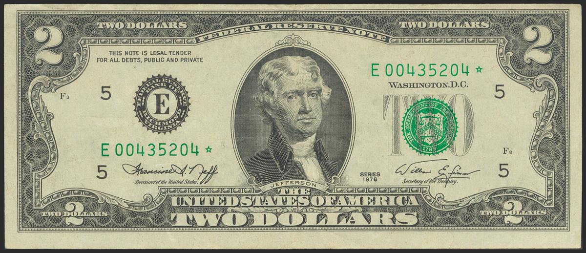 UNITED STATES OF AMERICA. 2 Dollars. 1976. Federal Reserve Note. Richmond. Replacement note. (Pick: 461r, Friedberg: 1935-E *). Very Fine.