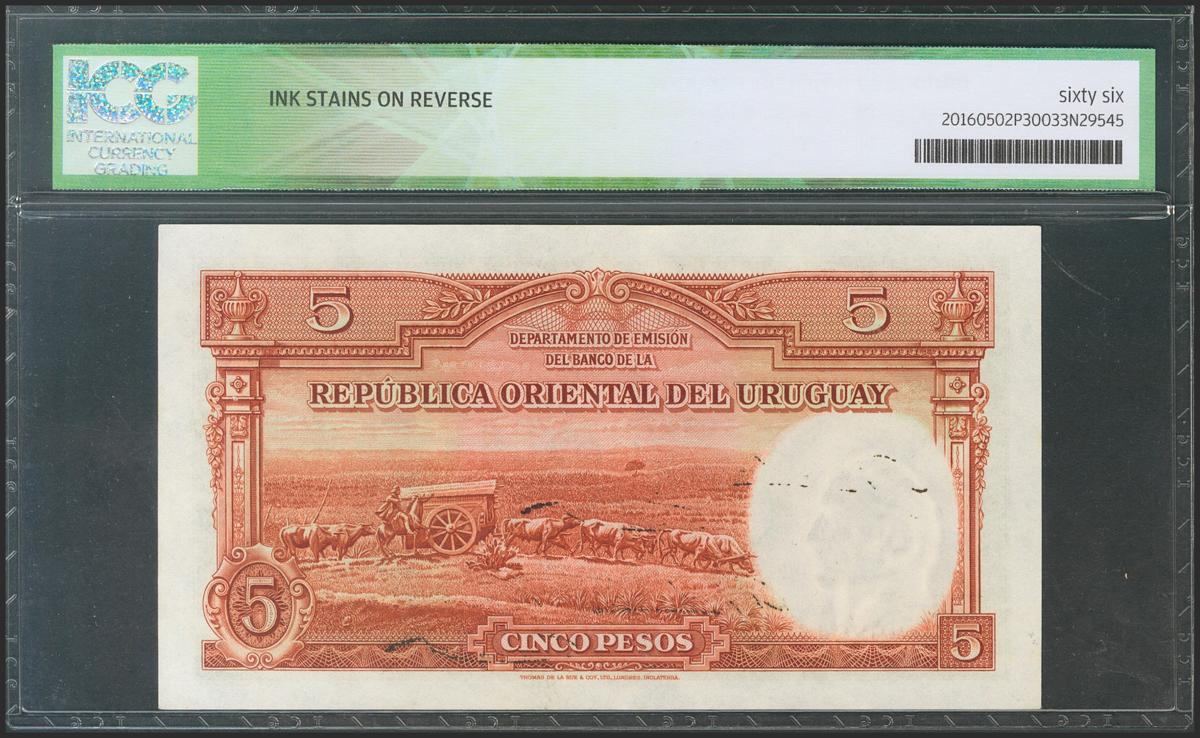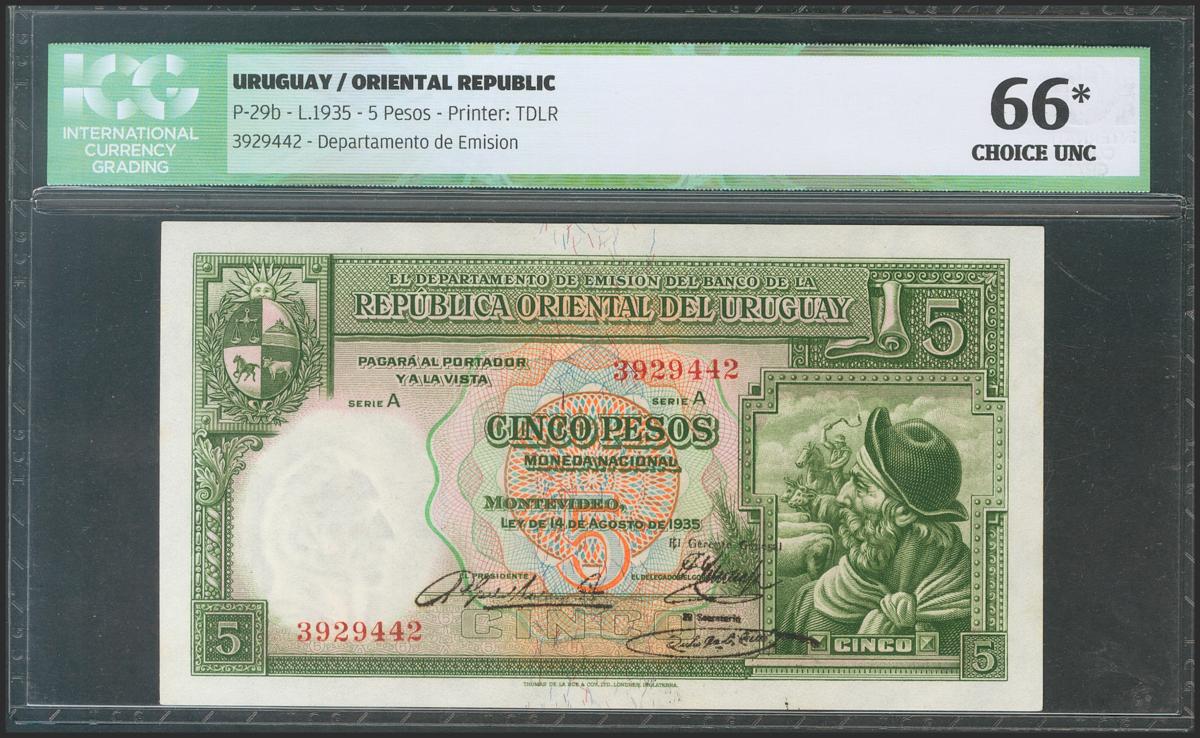 URUGUAY. 5 pesos. 1935. Series A. (Pick: 29b). ICG66 * (Ink stains on reverse).