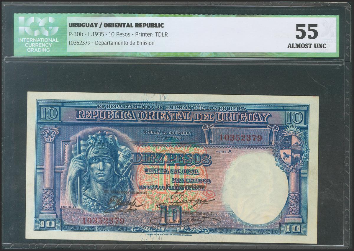 URUGUAY. 10 pesos. 1935. Series A. (Pick: 30b). ICG55.