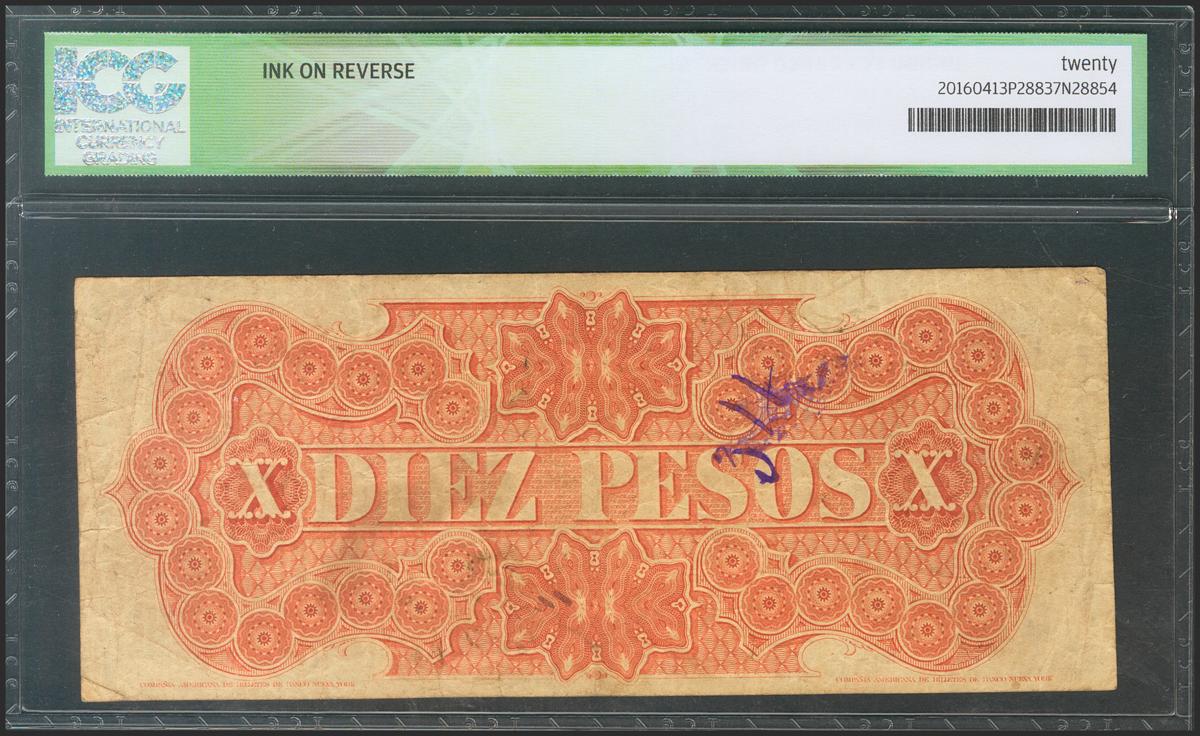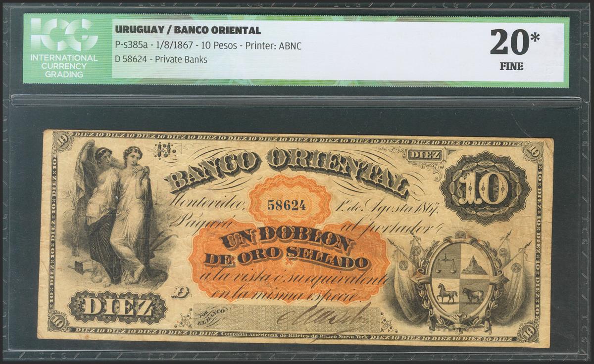 URUGUAY (BANCO ORIENTAL). 10 pesos. August 20, 1867. Series D. (Pick: s385a). ICG20 * (Ink on reverse).