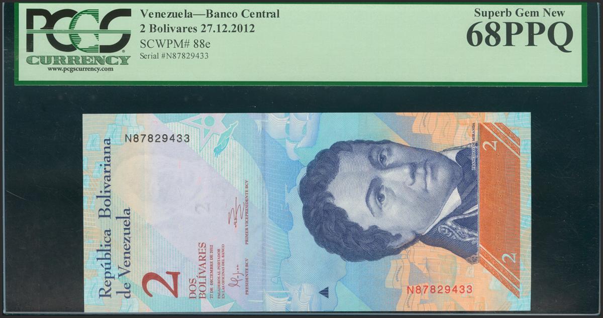 VENEZUELA. 2 Bolivares. 27 December 2012. (Pick: 88e). PCGS68PPQ.