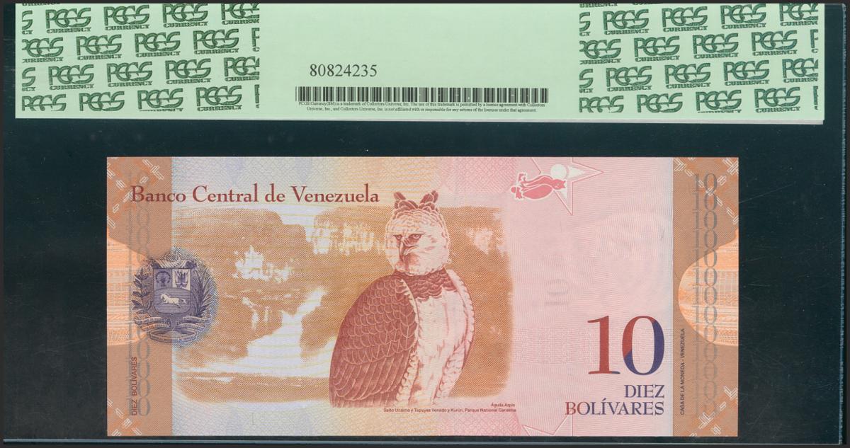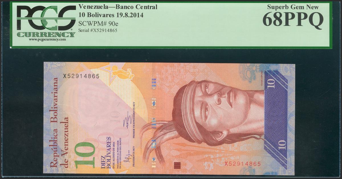 English VENEZUELA. 10 Bolivares. August 19, 2014. (Pick: 90e). PCGS68PPQ.