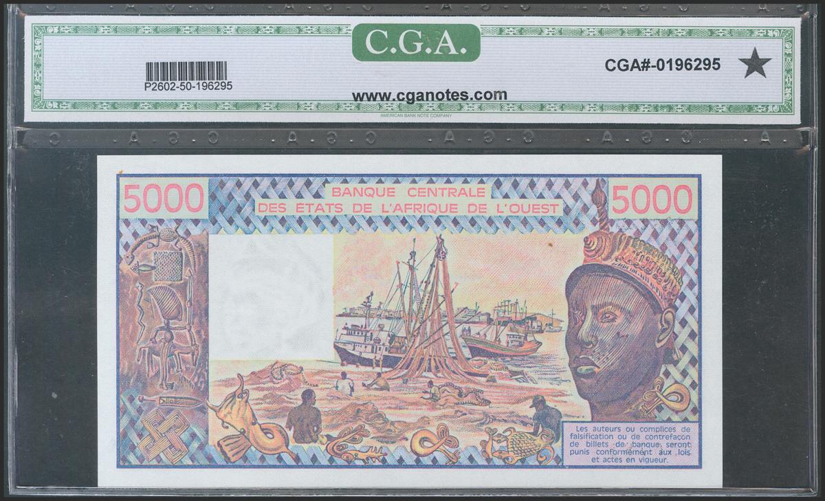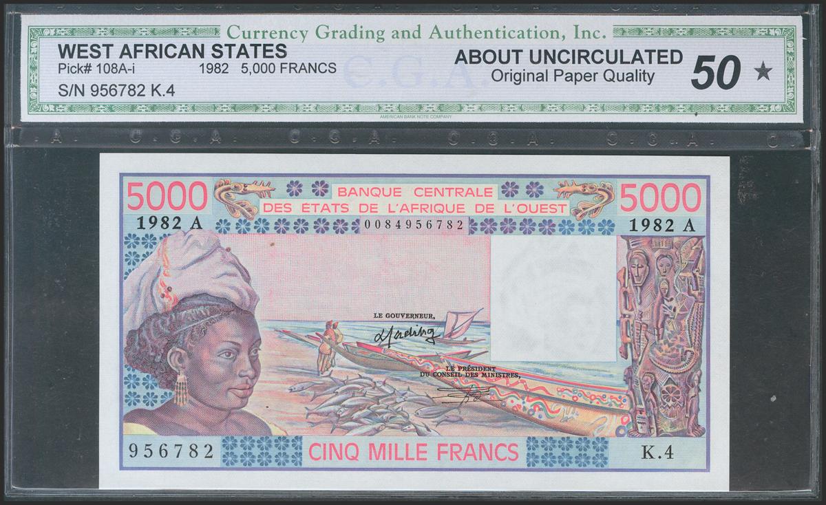 WEST AFRICAN STATES. 5000 Francs. 1982. Letter A for Ivory Coast. (Pick: 108Ai). CGA50OPQ.