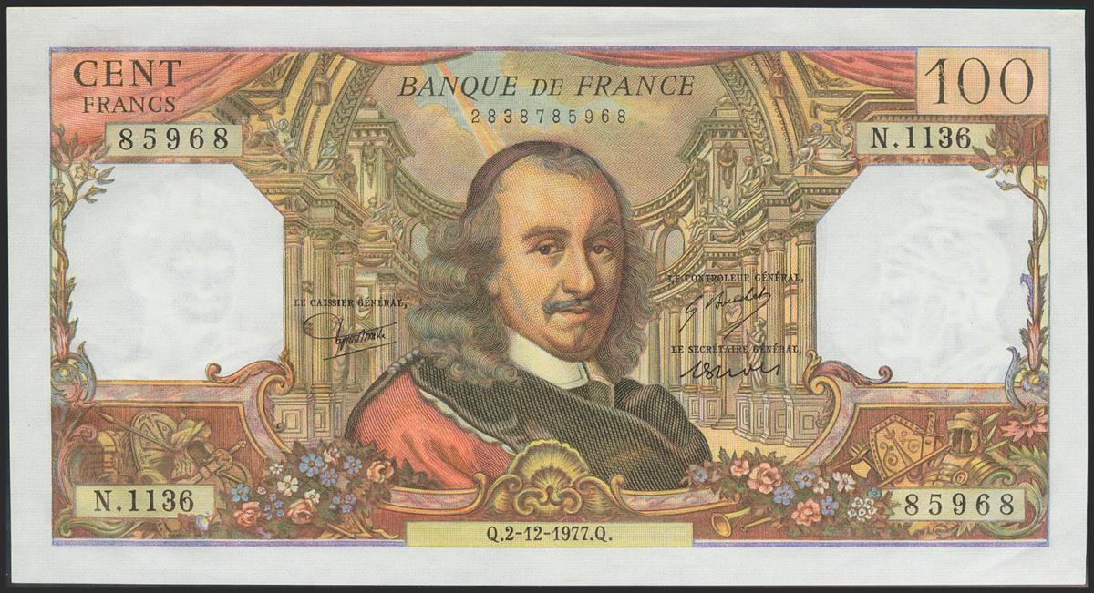 FRANCE. 100 Francs. 1977. (Pick: 149f). Paper waves. Better than Extremely Fine.