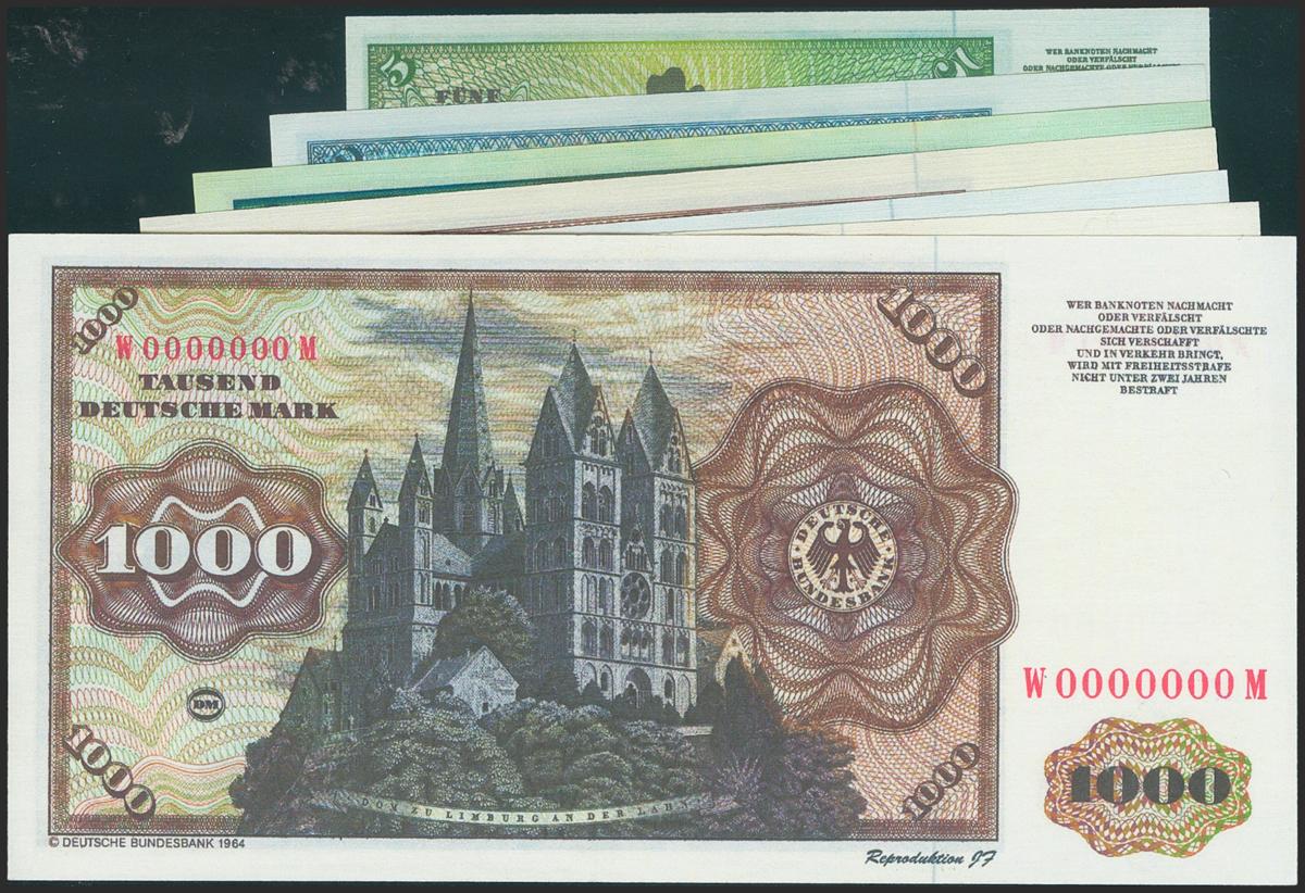 GERMANY. Set of 7 banknotes. Complete series (5-1000 Mark). 1970-1980. Reproductions. (Pick: 30, 31, 32, 33, 34, 35, 36). Uncirculated.