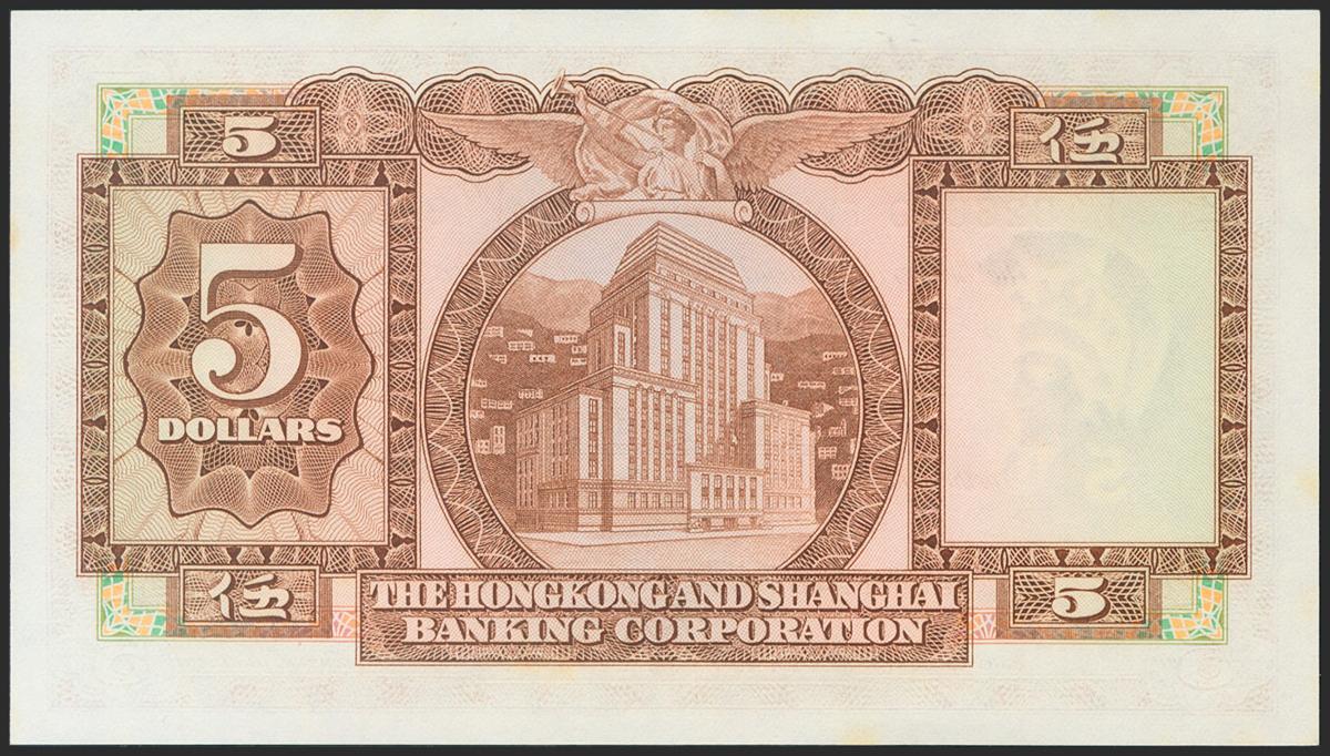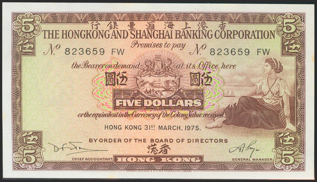 HONG KONG. 5 Dollars. 1975. The Hong Kong and Shanghai Banking Corporation. (Pick: 181f). Uncirculated.