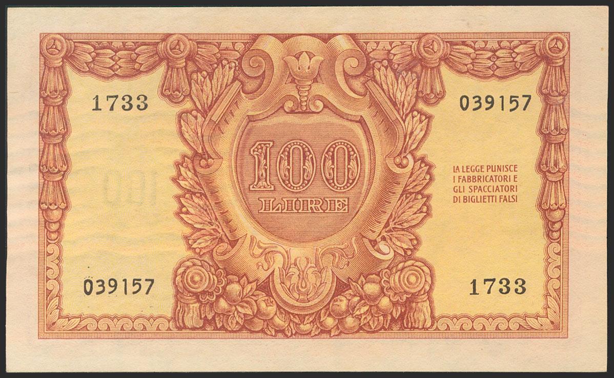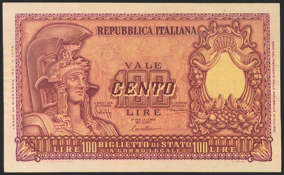 ITALY. 100 Lire. 1951. (Pick: 92a). About Uncirculated.