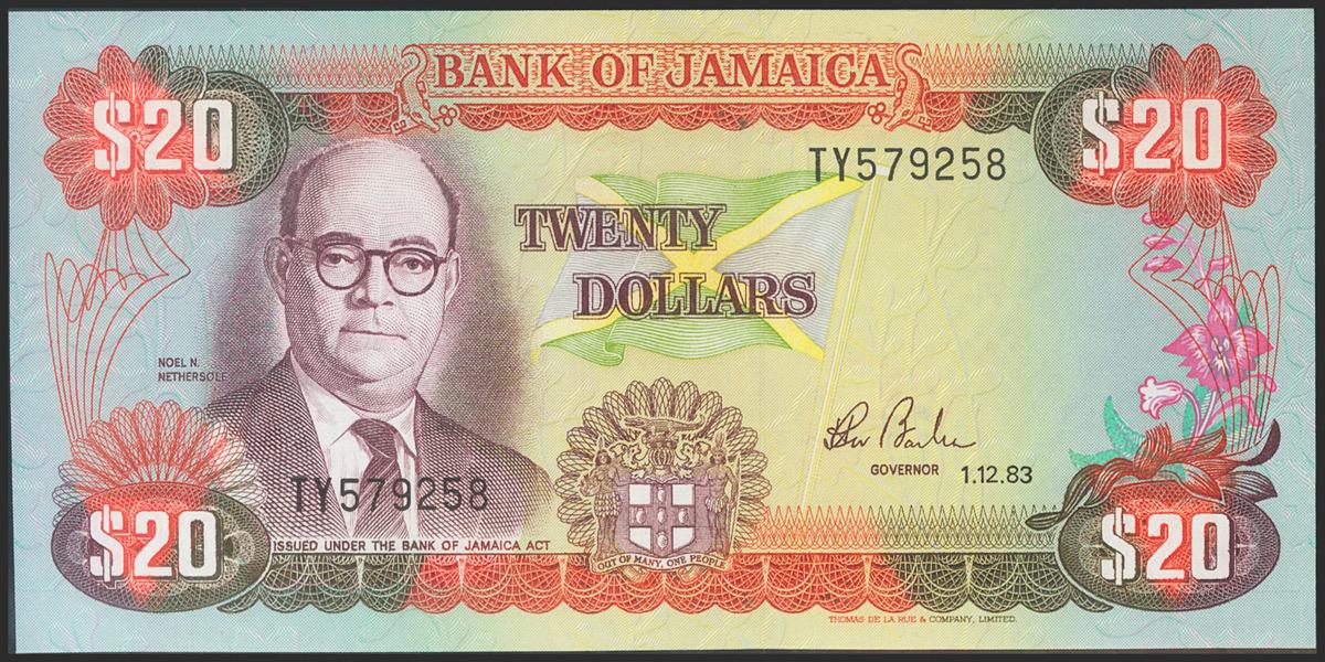 JAMAICA. 20 Dollars. 1983. (Pick: 68c). About Uncirculated.