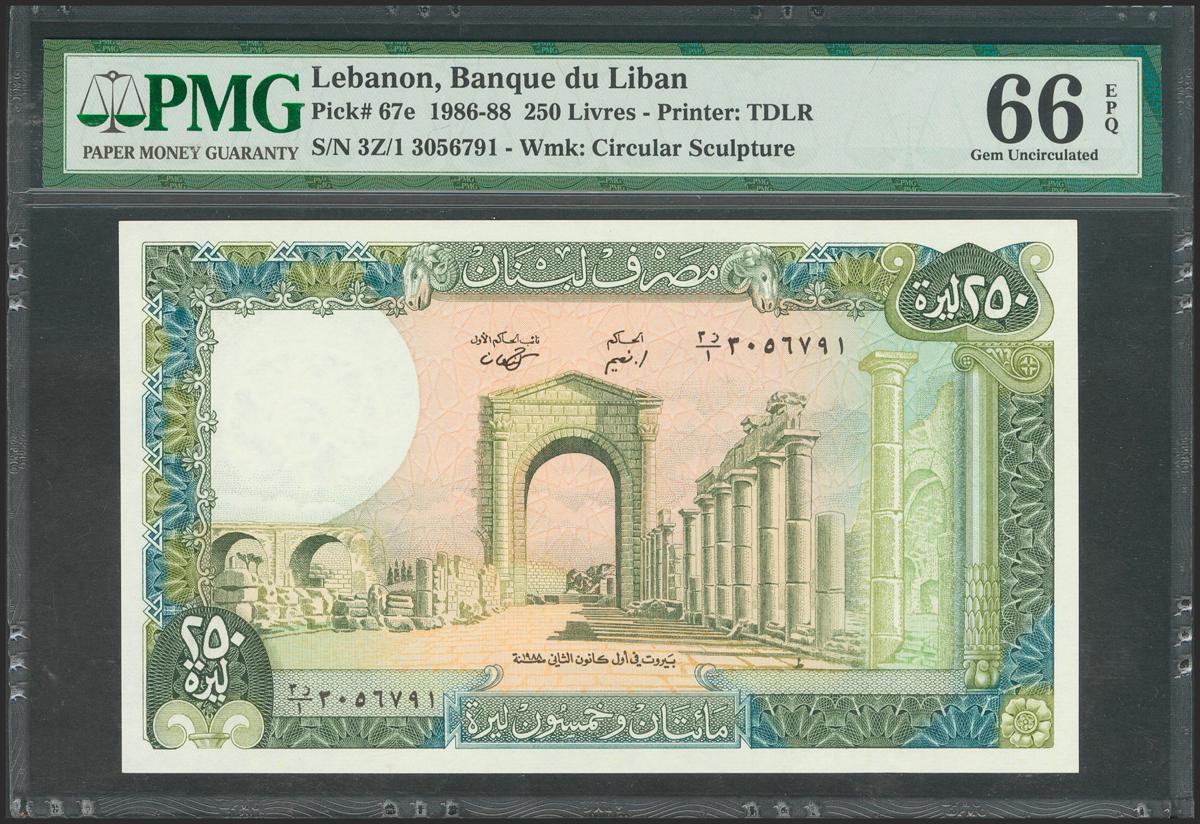 LEBANON. 250 Livres. 1986. (Pick: 67e). PMG66EPQ.