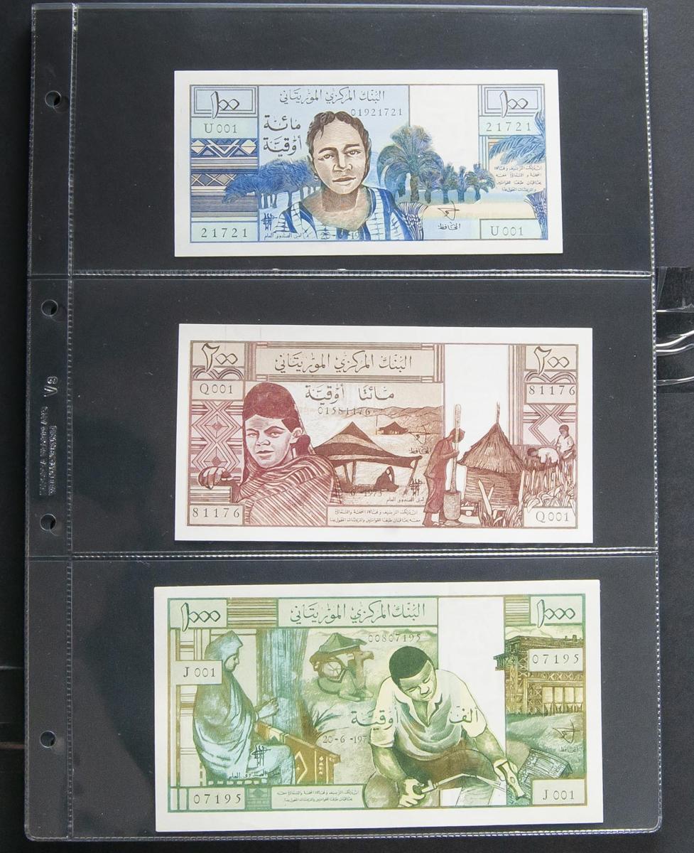 MAURITANIA. Fantastic set of 31 banknotes, includes rare Pick 1a, 2a, and 3a in top quality. Uncirculated to Extremely Fine. TO EXAM.