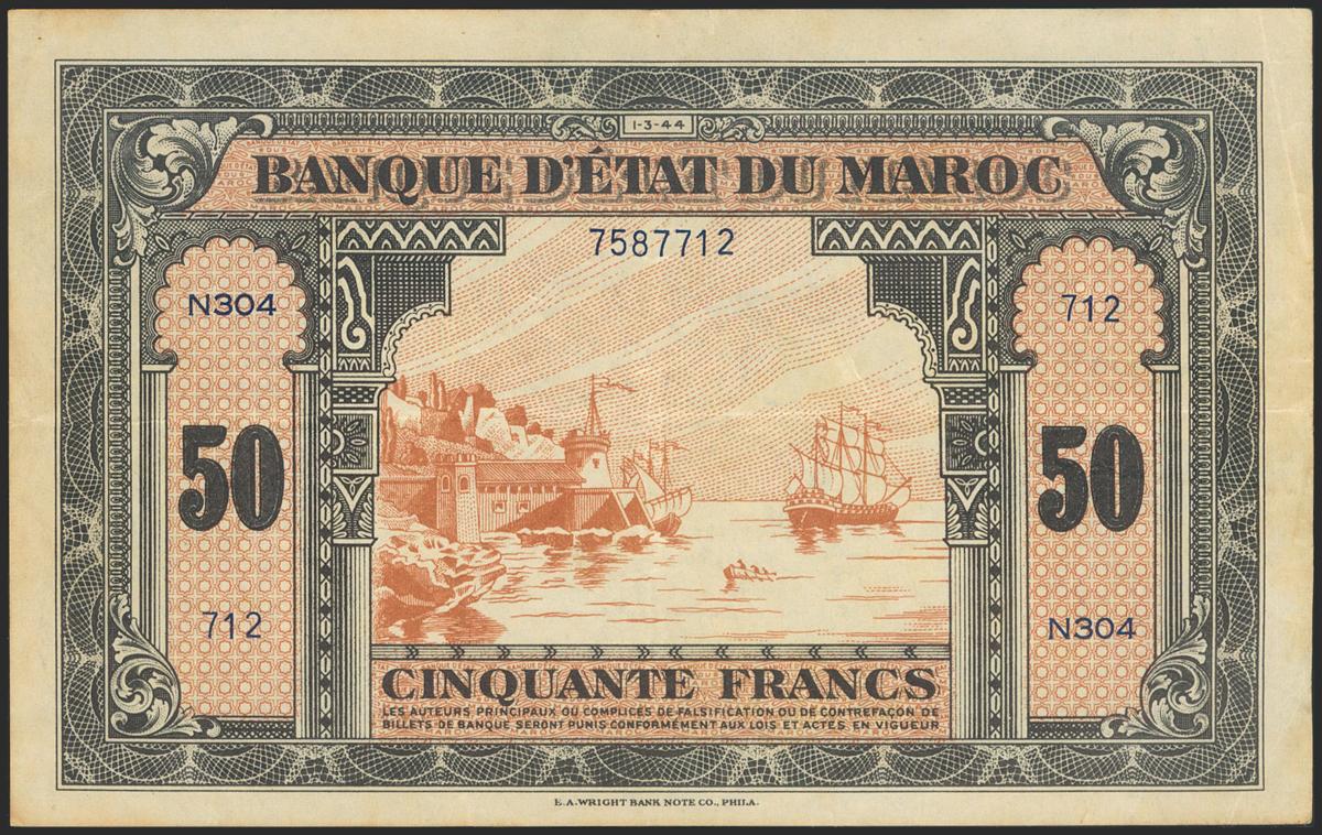 MOROCCO. 50 Francs. 1944. (Pick: 26a). Very Fine.