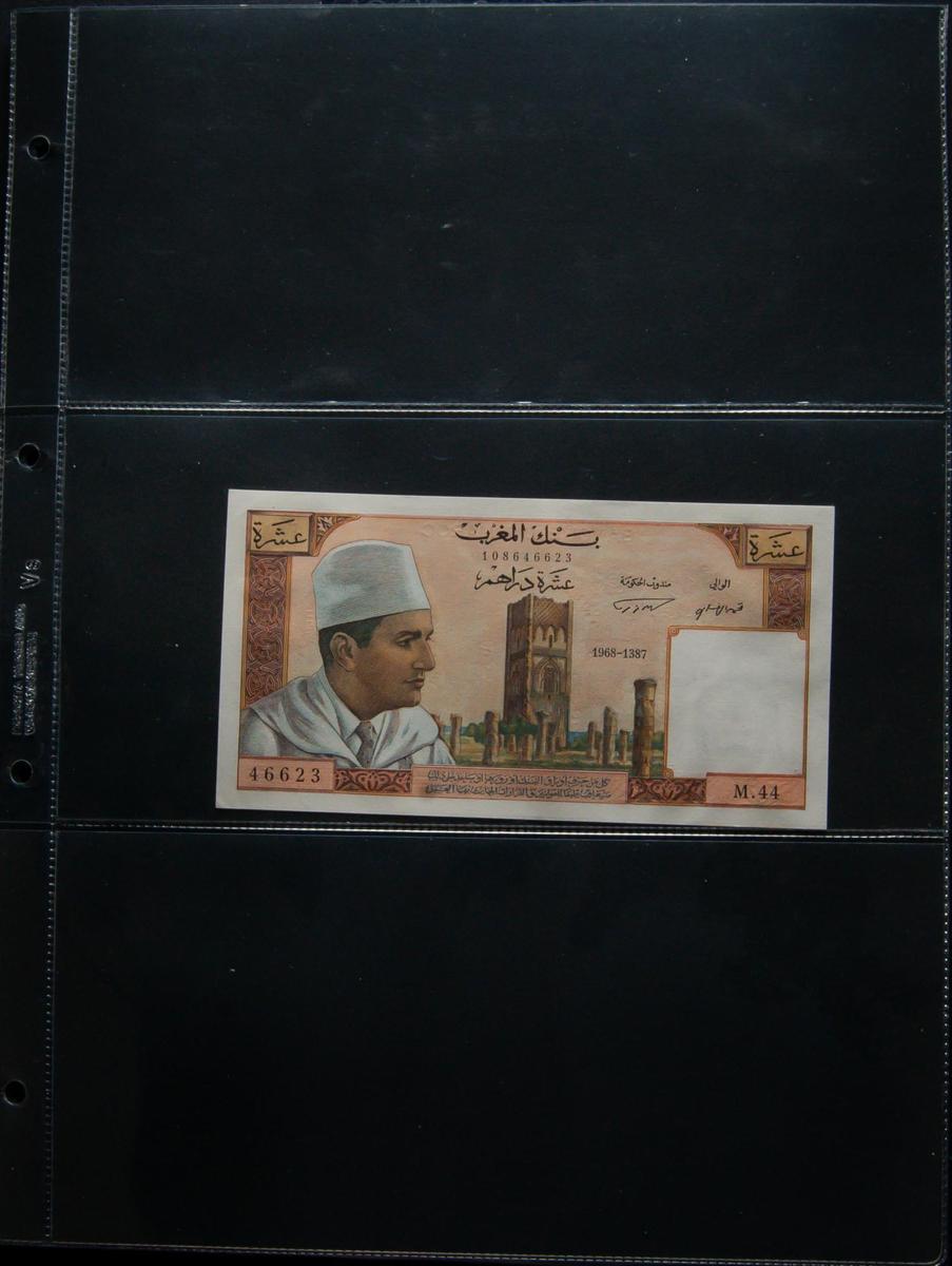 English MOROCCO. Interesting set of 21 banknotes, includes rare Pick 54d in uncirculated. Uncirculated to About Uncirculated. TO EXAM.