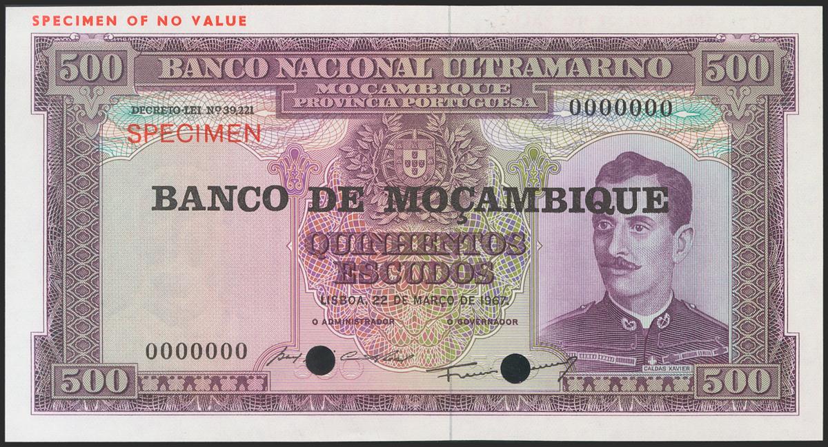 English MOZAMBIQUE. 500 Escudos. 1967. (Pick: 110s). Uncirculated.