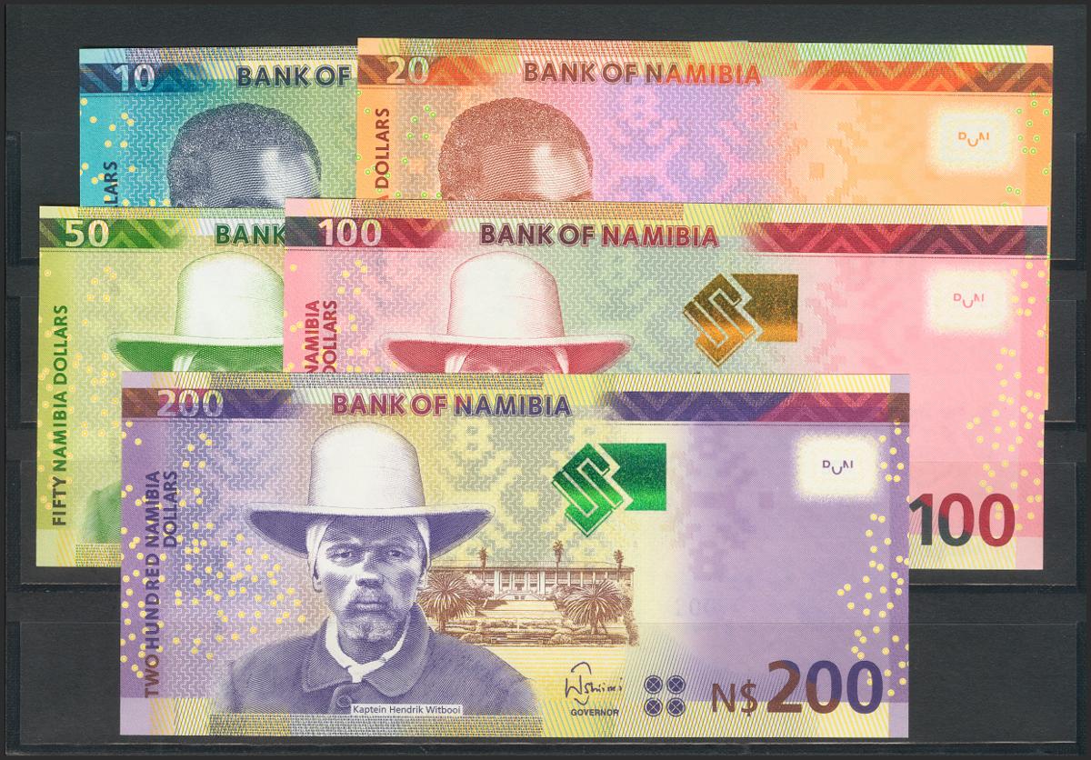 NAMIBIA. 10 Dollars, 20 Dollars, 50 Dollars, 100 Dollars and 200 Dollars. 2012. (Pick: 16, 17, 13, 14, 15). Uncirculated.
