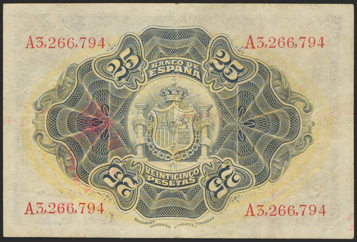 25 Pesetas. September 24, 1906. Series A. (Edifil 2021: 314a). Original sizing. Almost Extremely Fine.