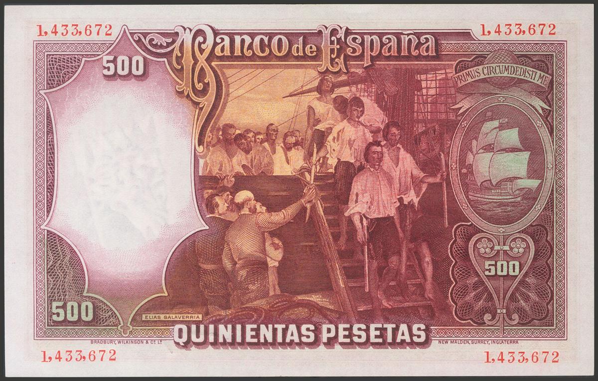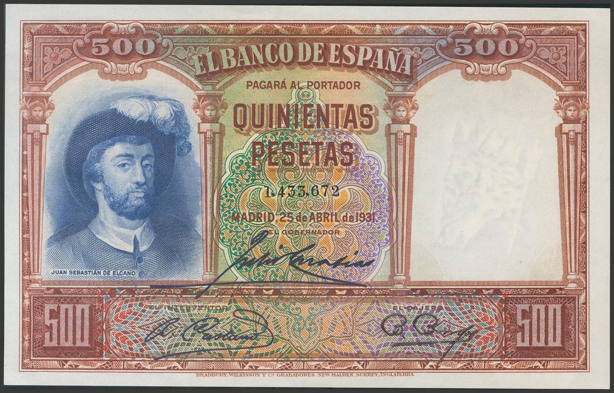 500 pesetas. April 25, 1931. Without series. (Edifil 2017: 361). It retains part of the original size. Almost Uncirculated.